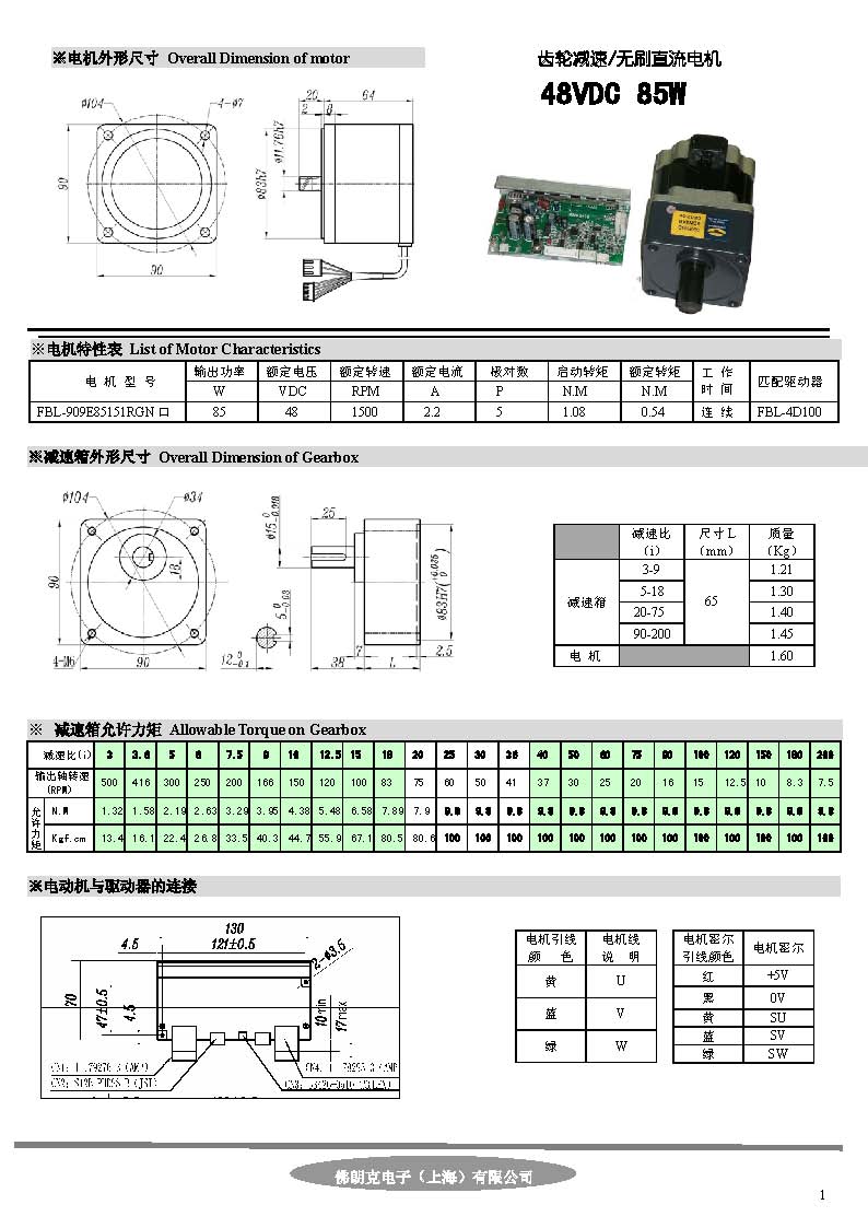 無刷齒輪減速電機85W